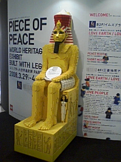 少し前に天神ビブレに飾ってあった物です(゜∀゜;ノ)ノ 全部あのLEGOブロックで作ってあります(◎o◎) 見てて面白かったので撮りました アップ遅くなってすみません。 さあ07201さんのスナップシーンです。 ツタンカーメンらしき坐像と宮島の鳥居そして金閣寺ですね デフォルメされていても、あるいはスケールが変わってもすぐにわかりますね。 ものをその特徴で記憶するシステムを「記号」性とも言います かたちだけでなく、色や音にも記憶によりイメージを描く力が人にはあるようです。 先日TVで最初、雑音としか聞こえないように飛び飛びに加工した音を聞かせたあと、 元の音を聞かせると、今度は雑音がきちんと音楽やことばに聞こえるといった実験をしていました。 ものまねやうた真似を楽しめるのもそうした人の能力からですね。 それにしてもレゴはだいすきなので見たかったですね。