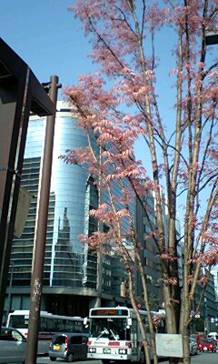 この写真は天神で撮りました。 桜色の葉は春らしくもあり例えるなら散らない桜です。 オフィス街に落ち着く桜色のアクセントは人の目にスッと入ってくる癒しの色です。 by07110 ここ数年で天神の町は大きく変わりましたね。 大型商業施設が南へ移動するにつれ、 地下鉄が複数開通し アクロスや福岡市役所の広場と イムズやガレリアなどのセミパブリックな通りがひとつながりとなって、 ようやく回遊できる街を感じることができます。 どんたくのころまでは、特に都会の良いところが満喫できる時期でもあります。 どうか街へでてシーンハンティングしましょう。 僕も仕事場の薬院からひと歩き、散らない桜見てきます。 59から67まで一括でアップします