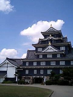 岡山城です。 真っ黒な城だから、別名『烏城(からすじょう)』とよばれているらしいです。 今になるとシックでお洒落にみえますよね。by07227 絵葉書のようにすばらしいショットですね 何度か岡山へは行きましたが、お城を見ていません次はきっと行くでしょう(笑) 日本のお城の造形はもちろんすばらしいのですが、 その建築スピードも西洋に比べてすばらしく早いのだそうです。 御(おん)大工--今の建築家です--のもと数十万人の職人が集められ、 数年で完成するそうです。 さらに他国の建築家は完成後防衛上の機密保持のため殺さたり幽閉されるのですが、 御大工の場合その技術を見込まれ敵方の城を造営することもすくなくなかったとか、 城のデザインが洗練されていくのは、 そうした日本の美意識に支えられているのかもしれません。 by KK PR