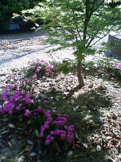下に植わっているシバザクラが、まるで木の影で休憩してるようにみえて送りました。 あと、もぅ夏が訪れようとしているのかなぁと思い、撮りました。 2009年の初ショットです。 シバザクラをじっくり見たことがないのですが、一面に咲いているイメージでしたがこれは可憐ですね。 光が大好きなはずの草花が、まるで日陰を選んで咲いているような様子が気にとまったのでしょうね。 とてもいい写真です。 実は、私の事務所は北向きの10階です。 天神が一望できて、日があたらないので眠気がつかないのが気に入って決めたのですが、この時期はさすがに太陽が恋しくて昼休みに散歩します。 この時期は、緑の色にバリエーションがおおく山を見るだけで楽しいものがあります。おおいに楽しんでください。 ありがとう
